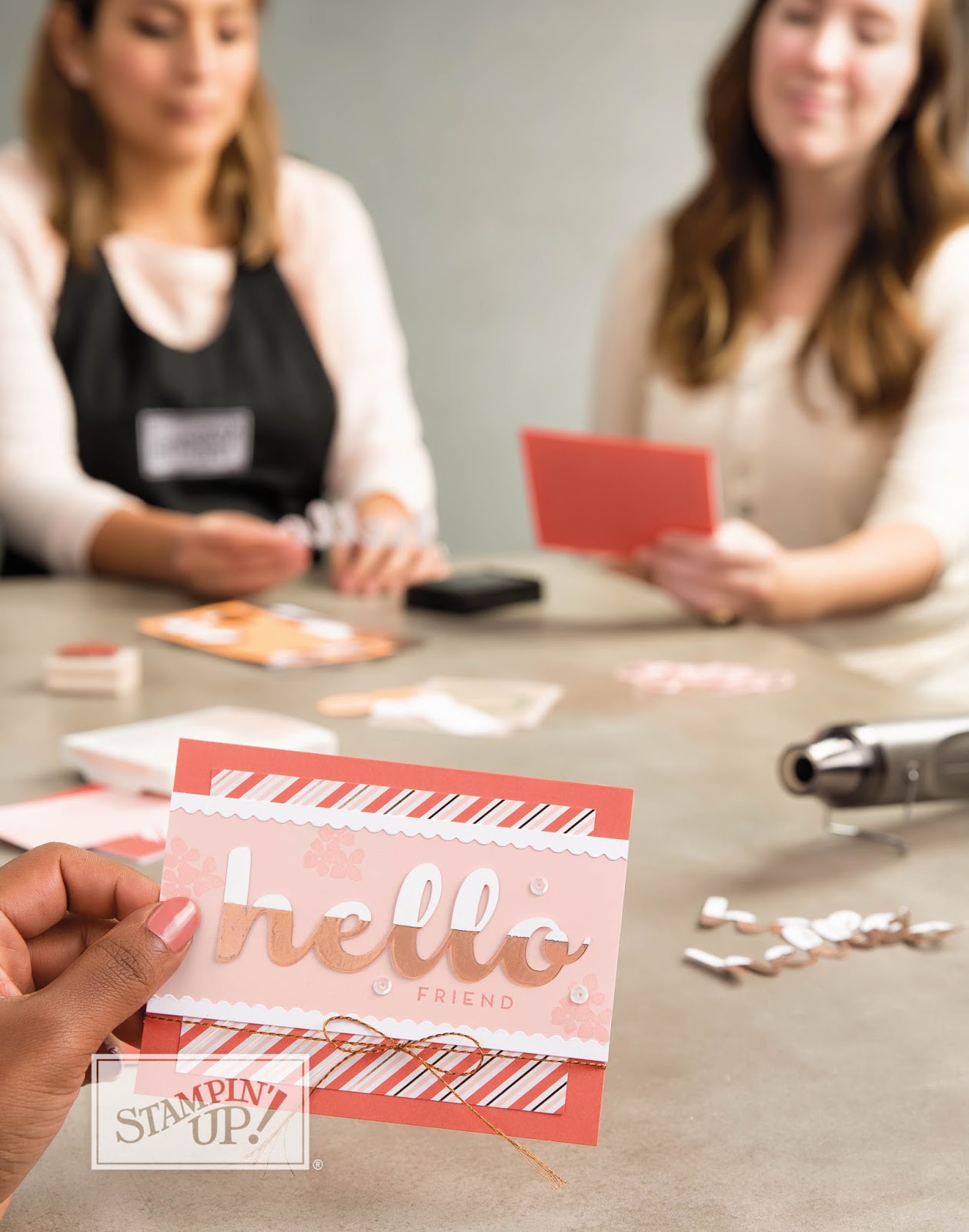 What is it about the stamping classes you take that makes you sign up? Is it the personality of your demonstrator? Is it your desire to learn some new technique? Do you want to meet with other stamp addicts? Is it the plethora of ideas you garner when together with other stampers? I know for me as a demonstrator and teacher I LOVE sharing what I know with others. I love filling a need for those that love to craft. I adore opening up a brand new world for someone who has never created a hand stamped card before! Stampin’ Up!’s Statement of the Heart truly expresses my desire!