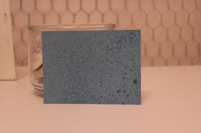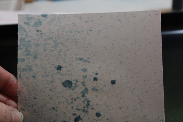 Here is an image of the spritzer on a solid piece of cardstock. This shows the what a fairly concentrated spritz looks like when sprayed from the bottom right corner.