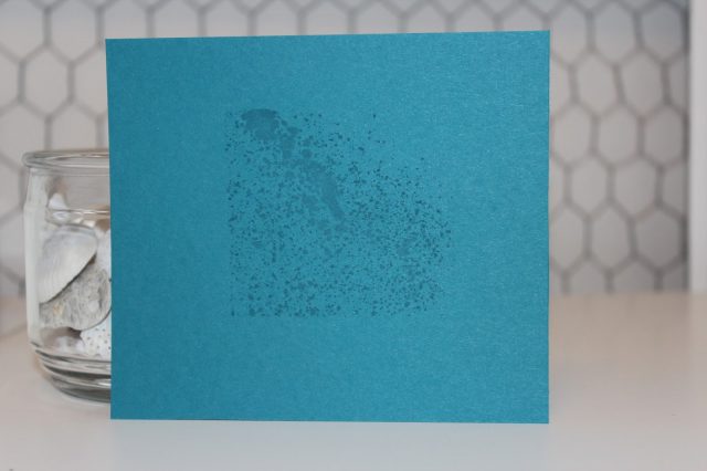 So, I wanted to see what spritzing on the clear blocks would look like. Here it is pictured above. I love the way it appears in the image of the size of the block. This is a look you cold recreate using a masking or reverse masking technique as well.