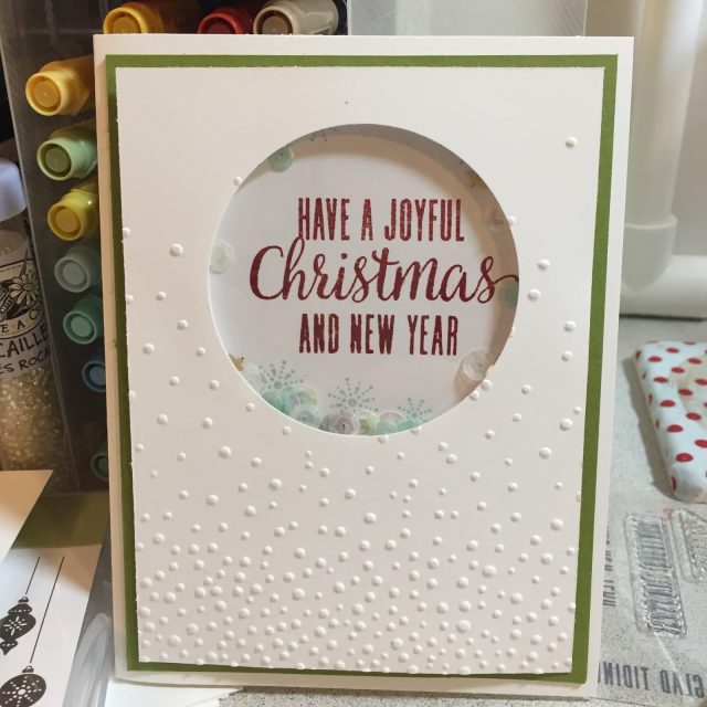 Are you thinking about the holidays? The weather here in Northeast Ohio has been unseasonably warm but I am ready for all things FALL! Hot apple cider, pumpkin roll, cool crisp mornings and evenings! Another thing I look forward to in the fall is the planning and stamping of my my Christmas cards. I love thinking through what images I want to share, what sentiment sums up my feelings, and what colors best convey those! Do you long for time together with your girlfriends creating your cards? It feeds my soul to have that creative time with those I enjoy! Time set aside just to create, to play with colors and designs, to share ideas and be inspired by others! This is what I’m most looking forward to this fall! That is why I decided to put together my Holiday Hoopla class- to provide that block of time for you! I hope you can come. See my events page for details and pre-order info. If you can’t, be sure to set aside time to get together with your girlfriends.