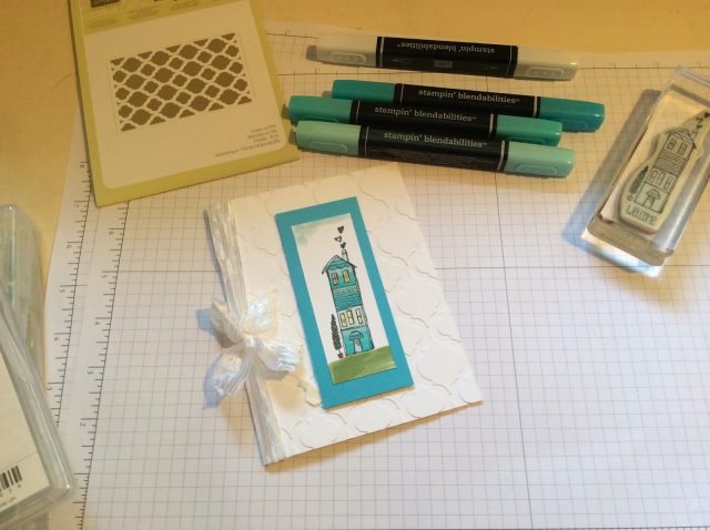 I used our Life’s Adventure stamp set, our Modern Mosaic Textured Impressions Folder, the Coastal Cabana Stampin’ Blendabilities makers and the Memento stamp pad! Check out our new catalog for some wonderful products to use to help relieve stress.
