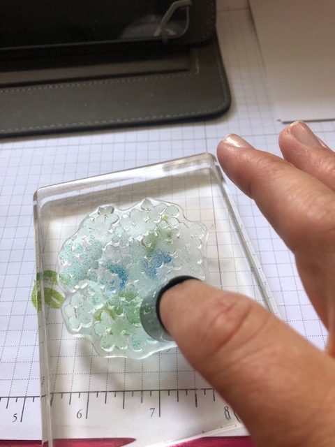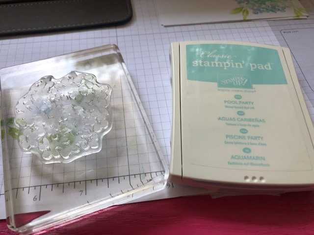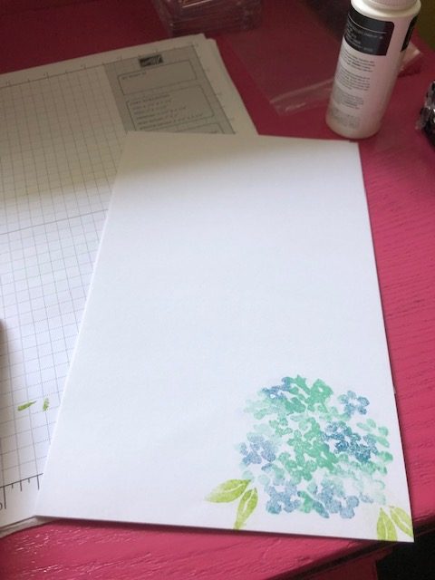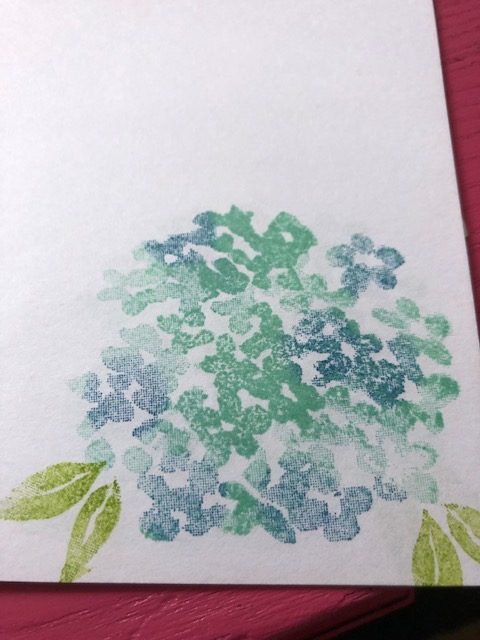 Stamp the inked Hydrangea stamp in the bottom right hand corner of the paper.