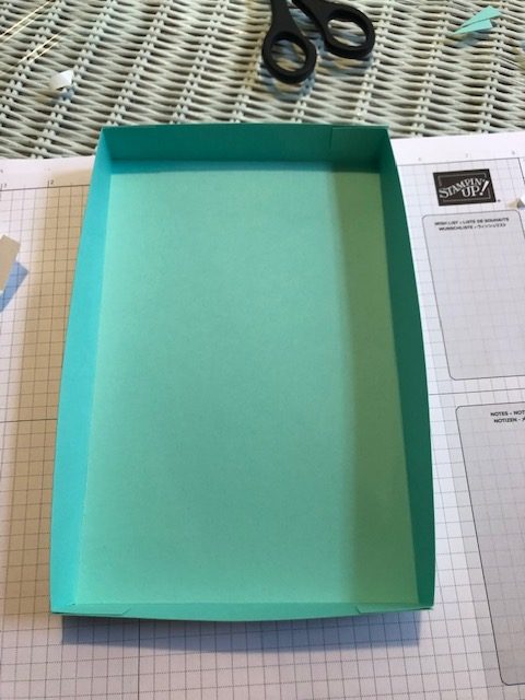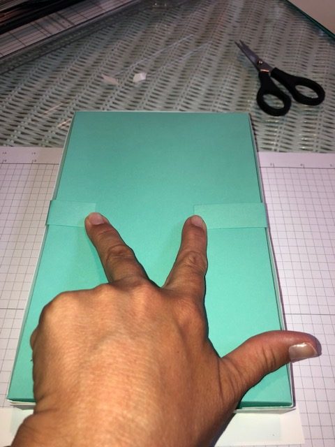Wrap the Coastal Cabana piece around the top of the box (the Whisper White stamped cardstock).