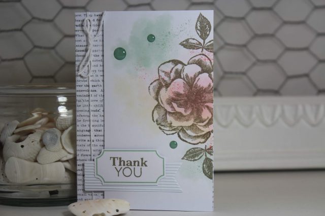 Painted Seasons Stamp Set is one of Stampin’ Up!’s Distinktive sets and it is available for free with a $100 purchase. The detail in these new types of stamps is truly spectacular! Check out the flowers on the Thank You card below.