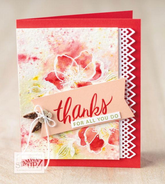 Oh how I love our Annual Catalog! The best thing ever is when I get the first peek of the new catalog in June! I will tell you that as an Independent Demonstrator for Stampin’ Up! we have access to the new catalog in digital format before receiving our printed copy. I can hardly wait to see that file posted and open it up and dive right in but there is NOTHING better than having the actual catalog in my hand and browsing through it page by page. I can’t tell you how many times I look through it! I check it out for the new sets! The round red NEW icon next to all the new sets and products is the thing I search for when I open it up for the first time! New sets, Designer Series Paper, punches, framelits, and ribbon!!!!