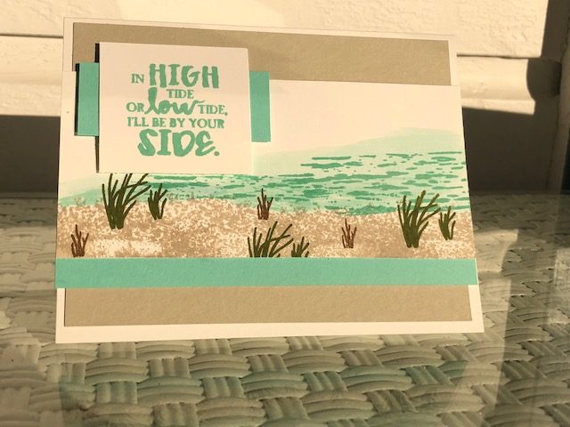 The catalog is not just wonderful to see all the new items for sale but I love using it to find inspiration. Sometimes I CASE a card and maybe tweek it only a tiny bit. Sometimes looking through the catalog simply inspires me to use a stamp set I haven’t used in a while. Often I get color inspiration from the card samples splattered throughout the catalog! I absolutely love the colors of this card: